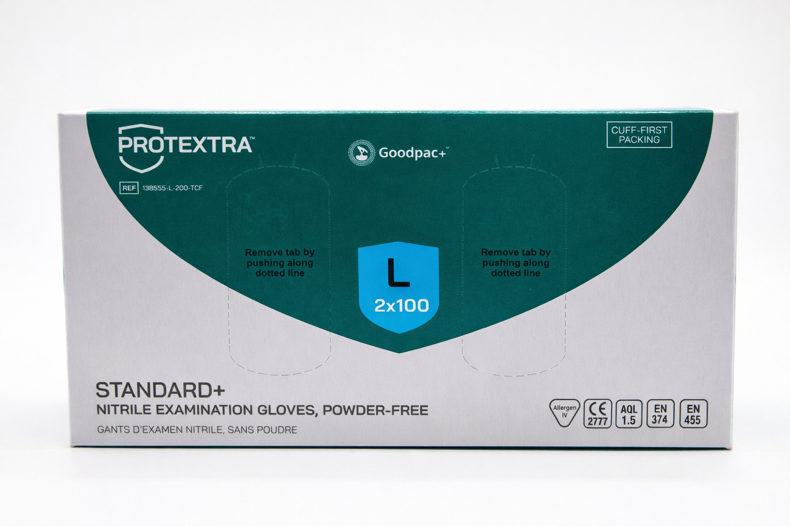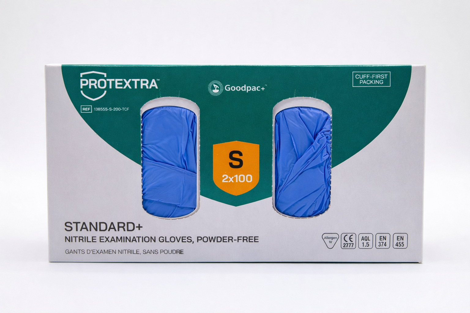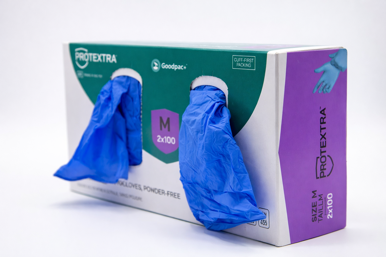 We offer the possibility to supply the below mentioned gloves in the Protextra™ Goodpac+™ cuff first packaging. This innovative type of packaging ensures that only one glove can be taken from the dispenser at a time. This results in a reduction of >10% in consumption.