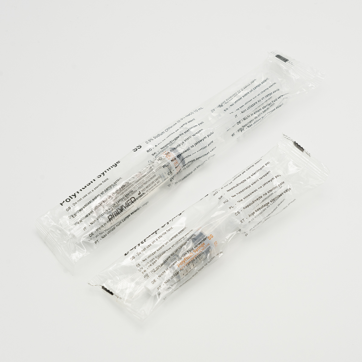 De Polyflush-spuiten zijn beschikbaar in twee verschillende versies (Sterile Fluid Path en Double Sterile), beide versies zijn verkrijgbaar in drie volumes. Zie de producttabel in de fotoreeks voor alle mogelijkheden.